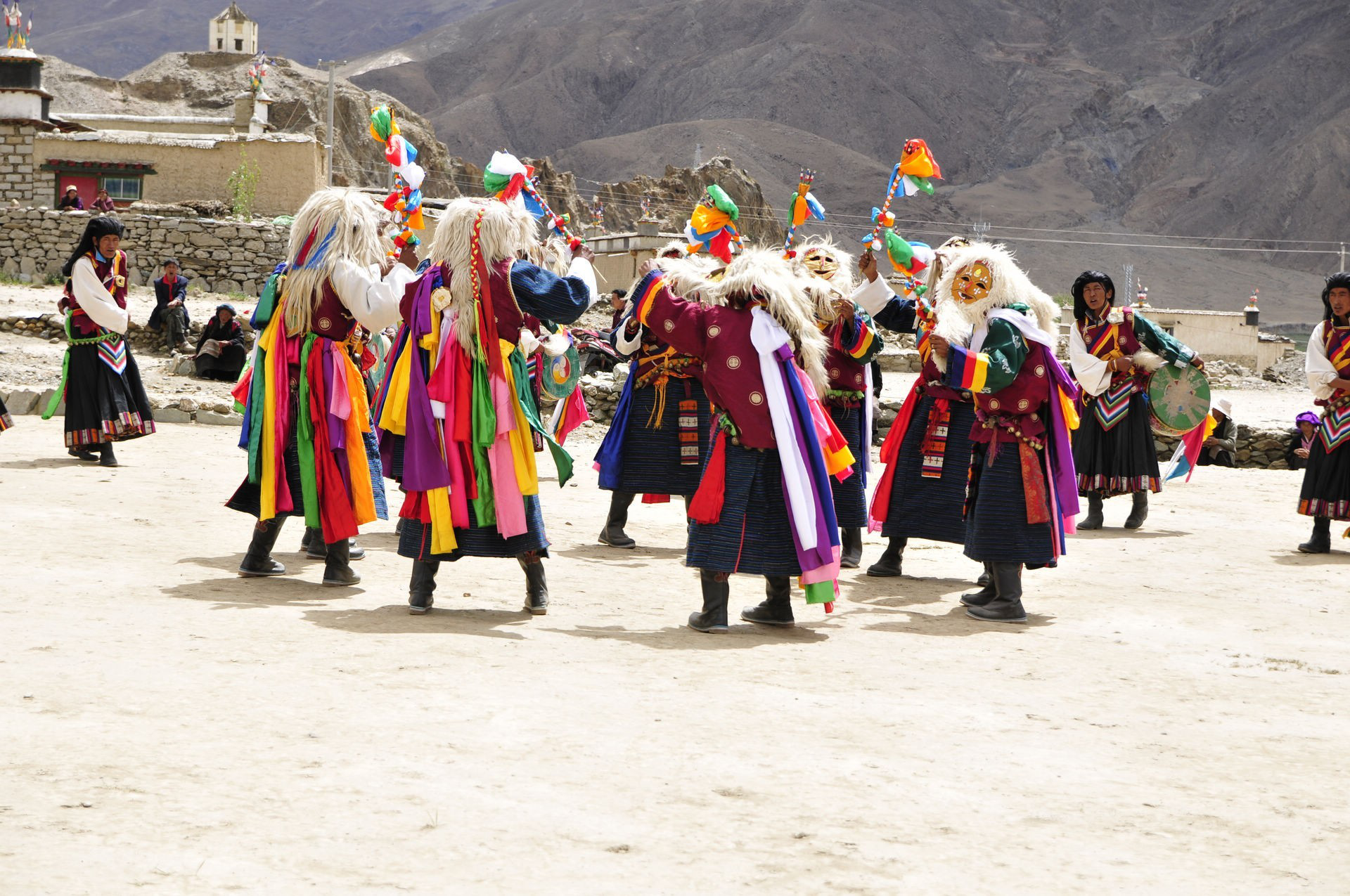 相傳18世紀(jì)末,強(qiáng)巴克龍從拉薩帶回一部《諾桑王子》的藏文本劇本,由此門巴戲開始在勒布流傳。