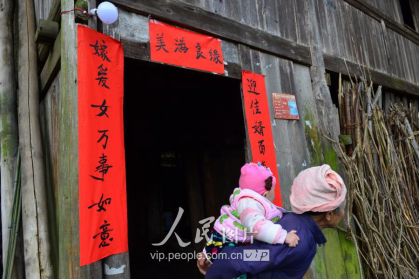 11月17日,新娘潘芝銀家門前張貼的結婚喜聯(lián)。