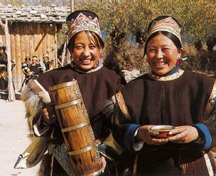 在工布地區(qū),不管是遠(yuǎn)方的來客,還是常來常往的朋友,一踏進(jìn)主人的新家,主人首先端出的是香噴噴的酥油茶。如果是尊貴的客人,還要被請到上座。招待來客時(shí),主人會(huì)敬上酥油茶和青稞酒,尤其是青稞酒,主人要兩手棒著,恭敬地送到客人手上,客人喝一口,主人添一次,連續(xù)三次??腿俗詈笠豢跉獍驯械木坪韧?,這就是通常所說的三口一杯。如果客人推辭,主人還要獻(xiàn)上優(yōu)美動(dòng)聽的酒歌,以此來表達(dá)主人的熱情和對(duì)客人的尊敬,直到客人把杯中的酒喝完為上。手捧酒杯,主人依次要給所有的來客敬上一遍。杯杯醇酒,盛滿了工布人的情和意。那情景,常令在場的人感動(dòng)不已。