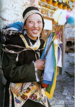 搬家的這天,家里人都要穿上節(jié)日盛裝。一大清早,家庭主婦身著藏裝,手捧象征五谷豐登的“切瑪”,喜氣洋洋去新家;走在主婦身邊的是家庭男主人,他手里提著青稞酒。當(dāng)然。隨著社會(huì)經(jīng)濟(jì)的發(fā)展和生活水平的提高,有許多藏族男子在喬遷新居時(shí)已經(jīng)是西裝革履;他們手里提的,也許會(huì)是啤酒。孩子們最喜歡家里有喜事,最喜歡辦喜事。也最喜歡熱鬧。在這種時(shí)候,他們身穿新藏裝,嘴里不停地吃著東西,幫家人提個(gè)燒水壺之類的東西。喬遷新居的喜慶充溢在全家人的臉上。