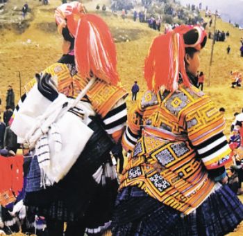 要論“疊穿”的數(shù)量之最,則當屬貴州大方縣顯母村的苗族女性了。與苗族慣用銀飾的固有印象不同,這里的苗族女性鮮以銀為飾,她們用數(shù)量極為可觀的服飾“疊穿”來彰顯富裕。節(jié)日里,顯母村的苗族女性換上盛裝——數(shù)條百褶裙系在腰間,塑造出豐腴的臀部造型,內(nèi)層裙子素凈無花,外層裙子則布滿條帶狀蠟染裝飾。在這個難得的大型社交場合,未婚女孩通過“疊穿”后的獨特造型來展示自己的魅力,衣物的數(shù)量和精致程度成為了吸引異性、獲得肯定的重要標準和獲得美好婚姻的重要條件。到了婚禮時,女性所著裙子的數(shù)量更是可達35條?;楹螅齻円谌惯吋由弦蝗ι钌咃椧宰鳂俗R。