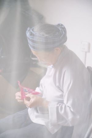 對制衣人來說,她們如舉行儀式般專注著染布、成衣,或許也在這個過程中積攢起許多專注和深情。一位有十幾年經驗的阿姐曾告訴我:“做這衣服要有一顆溫柔的心?!甭爼r深深一顫,而用黃奶奶樸素的話,則是“染布高興”。