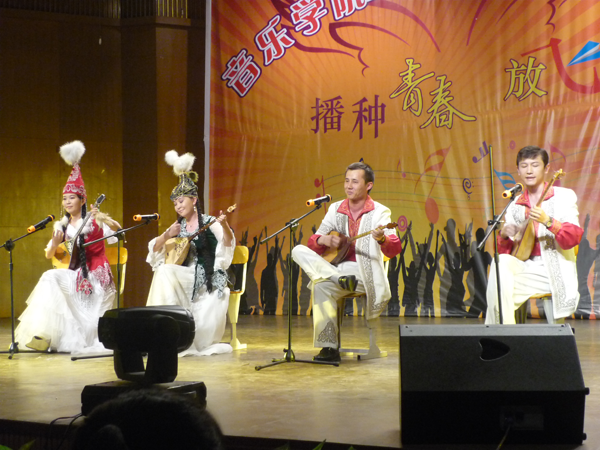 早在本世紀(jì)初,新疆師范大學(xué)音樂學(xué)院就曾在意大利、新西蘭和澳大利亞的國際樂壇,依靠本土特色作品奪得了多枚金牌。近年來,學(xué)院老師、學(xué)生依然保持這一傳統(tǒng)優(yōu)勢,在各項文藝賽事、藝術(shù)展演中獲獎無數(shù)。2009、2010年學(xué)院民族樂隊與香港中樂團(tuán),在兩地聯(lián)袂上演“穿越時空、絲綢之路”音樂會,引起香港、新疆兩地觀眾的熱烈反應(yīng),包括中央電視臺、鳳凰衛(wèi)視等主流媒體對音樂會進(jìn)行了深度報道,被譽為近年來理念與藝術(shù)的完美結(jié)合。學(xué)院木卡姆樂團(tuán)、冬不拉樂團(tuán)還在2012年文化部文華藝術(shù)院校獎比賽中獲得五項大獎,在國內(nèi)引起巨大反響。