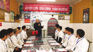 工作組工作人員向新疆籍務工人員宣講黨的十九大精神。 陳金橋攝