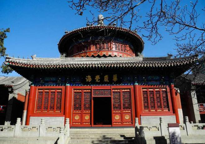 潭柘寺楞嚴壇(20世紀50年代拆除后構(gòu)建封存)位于潭柘寺西路,建于明代。殿為木構(gòu)建筑,上層為圓攢尖寶頂,下層為六角形,臺基為六角形石質(zhì)壇臺。