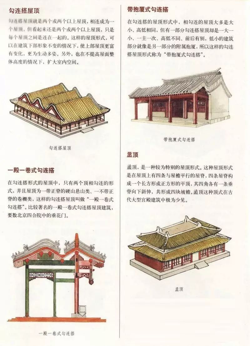 中國古建筑屋頂千變萬化,瑰麗多姿,不同的屋頂相互組合、穿插,又會形成不同的屋頂形式。