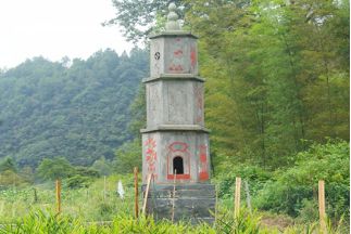 這座完整的“惜字爐”位于易家田村巫水河西岸田垅邊,座北朝南,塔下河水潺潺,古木參天,景色宜人。全爐六角六面形,三層式格局,分為底層、亭座、亭身、云蓋、亭頂五部分。其中基礎(chǔ)層高105cm,主體第一層至第三層高度分別為120cm、105cm、88cm,頂層高70cm,連同3個(gè)云蓋在內(nèi)總高度達(dá)6米。“惜字爐”呈六面形,基礎(chǔ)層為正方形,四面各寬140cm;主體第一層至第三層每面寬度分別為70cm、60cm、50cm。頂層為3個(gè)寶葫蘆。