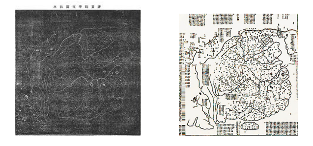 唐代地理學(xué)家賈耽采用裴秀制圖法組織畫工繪制《海內(nèi)華夷圖》,幅面約十平方丈,古今對照,雙色繪畫,注重少數(shù)民族部分,是巨幅唐代中國全圖?!哆M海內(nèi)華夷圖及古今郡國縣道四夷述表》云:“唐臣聞地以博厚載物,萬國棋布;海以委輸環(huán)外,百蠻繡錯。中夏則五服九州,殊俗則七戎六狄,普天之下,莫非王臣?!?宋代《華夷圖》被簡化成縱橫各約80厘米,刻于《禹跡圖》背面;圖上不畫方格,有山脈、河流、長城和各州的名稱,其位置大體與實際相近。山脈用人字形表示,河流為單曲線;河流名稱注記在河源處,囊括眾多異族名稱。西安碑林博物館這塊作為印刷用的兩面刻有地圖的石版,是中國現(xiàn)存最早的石版地圖。唐代巨幅彩繪《海內(nèi)華夷圖》和宋代石刻《華夷圖》不僅標(biāo)志著中世紀中國制圖學(xué)上最高成就,而且是中國多民族國家的象征。