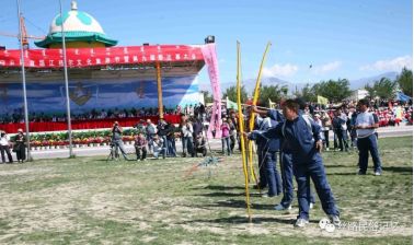 射箭、賽馬、摔跤比賽結(jié)合一起,成為那達(dá)慕的基本內(nèi)容。賽馬前祭敖包求得保佑護(hù)助