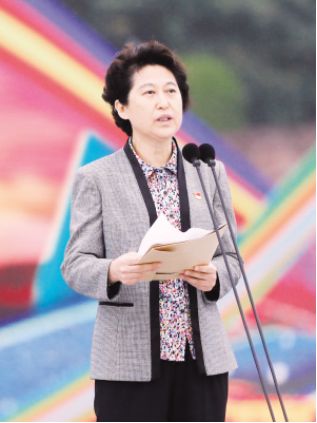 河南省委常委、省委副書記、政法委書記,運(yùn)動會組委會執(zhí)行主席喻紅秋致歡迎詞。 趙利 攝