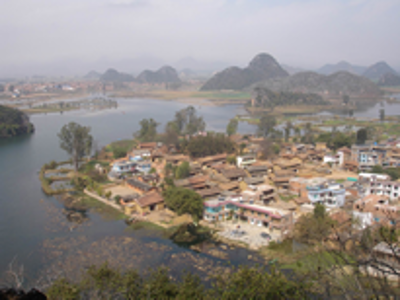 在一次學術會議上,筆者請教了首倡并主導“民族文化生態(tài)村”試點建設的尹紹亭教授,得知在他們首期的五個試點村落建設中,仙人洞村是比較成功的,于是在本項目的調(diào)查中,仙人洞村成為重點考察的對象之一?!跋扇硕匆妥逦幕鷳B(tài)村”位于云南丘北縣城西北16公里的普者黑湖畔?!捌照吆凇睘楫?shù)匾妥迦瞿嵴Z,意為“魚蝦多的湖潭”。普者黑實際是由眾多湖泊、河流構成,總面積達165平方公里,已經(jīng)開發(fā)成由5個景區(qū)、56個景點組成的滇東南國家級著名旅游景區(qū)。