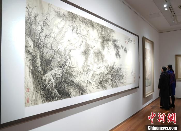 在展覽上,為慶祝中國(guó)藝術(shù)研究院建院70周年,田黎明和許俊,??苏\(chéng)、周石峰、任清和曾三凱,劉萬(wàn)鳴和劉彥水,趙建成、崔進(jìn)和劉少寧分別合作的《新綠》《千巖霞映》《棲禽圖》《我見(jiàn)青山多嫵媚》4幅丈二尺幅的中國(guó)畫同時(shí)亮相。