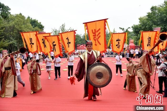 11日上午,2021第十八屆中國彭祖伏羊節(jié)在江蘇徐州彭祖園舉行開幕式,徐州當(dāng)?shù)卦俅纬尸F(xiàn)一年一度的“萬人空巷吃伏羊”民俗奇觀。作為中國彭祖伏羊節(jié)開幕式的重頭戲,來自全國各地?cái)?shù)百名烹飪大師再次齊聚彭祖祠共同祭拜華夏烹飪鼻祖彭祖。烹飪大師們統(tǒng)一著裝,整齊列隊(duì),行叩拜大禮,聲勢(shì)浩大,莊嚴(yán)肅穆,十分壯觀。
