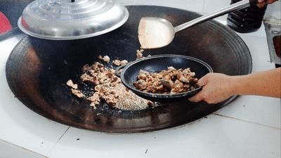 就著小火慢慢浸出來(lái)的雞油細(xì)細(xì)地將黃豆與雞骨頭炸脆,
