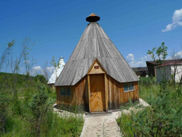 “撮羅子”又稱“斜仁柱”或“撮羅昂庫(kù)”,是鄂溫克以及鄂倫春、赫哲等東北狩獵和游牧民族的一種圓錐形“房子”?!按榱_”是“尖”、“昂庫(kù)”是“窩棚”?!靶比省笔恰澳緱U”,“柱”是“屋子”。把兩種名稱的意思合起來(lái),就是“用木桿搭起的尖頂屋”,這正是“撮羅子”最主要的特征。