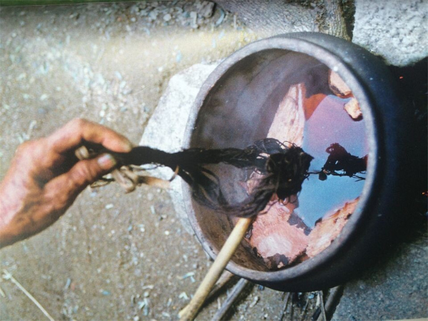 “染”是指紗線染色,包括美孚方言婦女在白色經(jīng)線上扎結(jié)成所需的花紋,再染成黑白斑花的經(jīng)線,然后用彩色緯線編織出色彩斑斕的筒裙圖案。