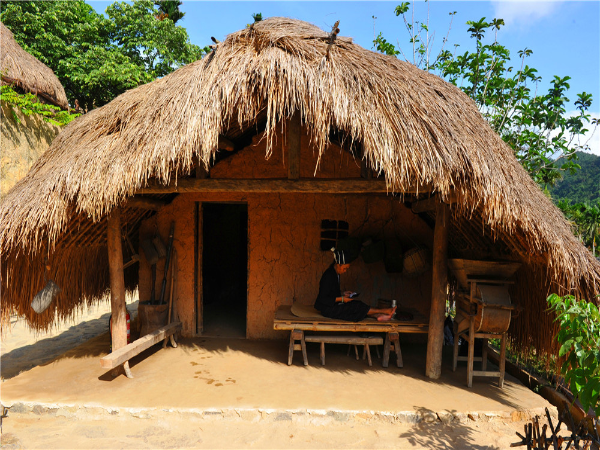 船形屋有高腳船形屋與矮腳(落地式)船形屋之分,外形像船篷,呈拱形。船形屋的建筑特點是,平面呈縱長方形,兩端山墻設(shè)入口,屋蓋一般是半圓拱形,房屋的輪廓像是一條倒扣的帆船。這類房屋不設(shè)窗戶,只從兩端開門,前面有一個陽臺,置一個樓梯供上下,進門后整個“船”身分為三節(jié),像三個艙,各有小門相通,第一節(jié)是“廳”,設(shè)有閣樓,存放糧食與雜物、家什等;第二節(jié)是臥室,除了放床以外,還放火灶,作為蒸酒或烤火之用;第三節(jié)面積最小,開一個后門,是每天舂米和放置生產(chǎn)工具、雞窩的地方。