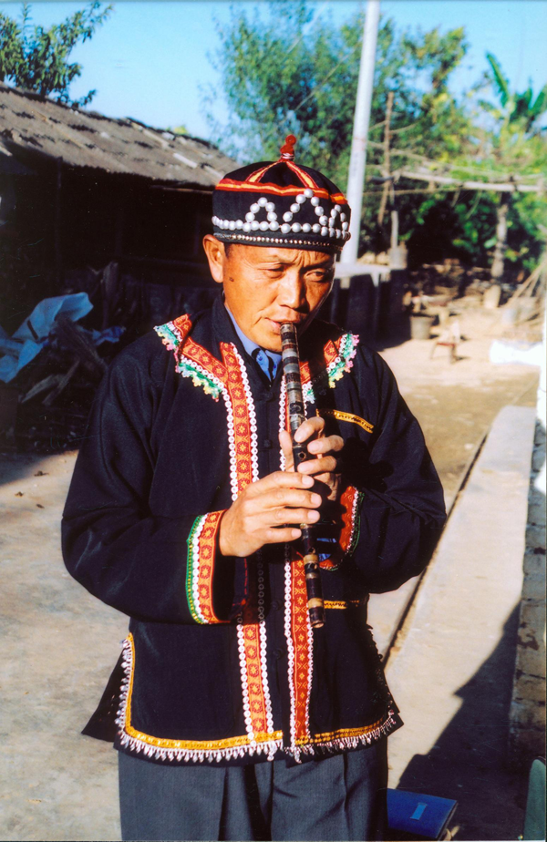 2.樂(lè)器。拉祜族的樂(lè)器多種多樣,大部分是自己動(dòng)手制作的。在瀾滄江以西的拉祜族(多數(shù)系拉祜納),喜愛(ài)的樂(lè)器是:葫蘆笙、蘆笛、哩嘎嘟、響蔑、稻谷桿笛、三弦、必嚕。鎮(zhèn)沅縣的拉祜族(主要是拉祜西),其流行的樂(lè)器有三弦琴、嗩吶、五管葫蘆笙、五眼竹笛、響蔑,還有芒鑼、桶鼓。景谷一帶的拉祜族(拉祜西)所常用的樂(lè)器有小號(hào)、大號(hào)、三弦、蘆笙、竹簫、二胡等。