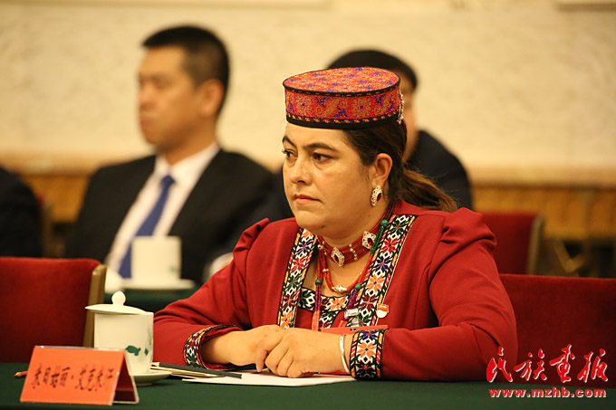 十九大代表、新疆塔什庫(kù)爾干塔吉克自治縣塔什庫(kù)爾干鄉(xiāng)小學(xué)黨支部書(shū)記米日姑麗·艾克米汗(塔吉克族)(滕俊攝影)