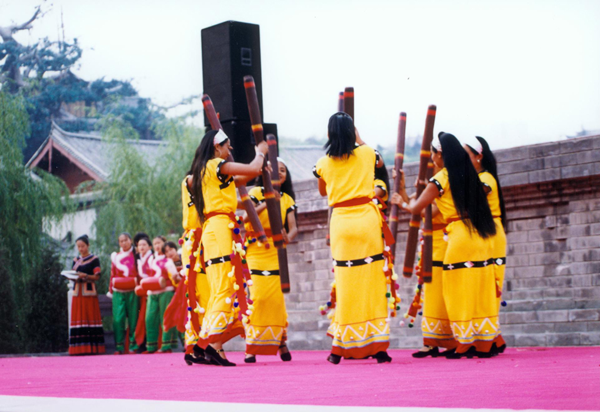 打擊樂:有象腳鼓、竹筒鼓、銅鼓、鑼、芒、镲、木鼓。舊時,木鼓不是樂器,而是人與神之間求應(yīng)的媒介,是佤族最崇拜的神物?,F(xiàn)在,木鼓已被作為文娛活動的打擊樂器。西盟縣木鼓舞獨具特色,國內(nèi)外聞名。