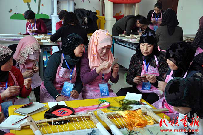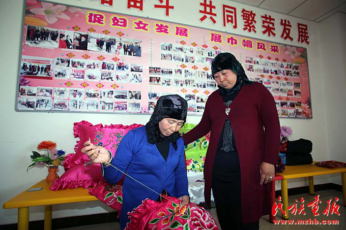 自精準扶貧實施以來,東鄉(xiāng)縣婦聯(lián)依托“隴原巧手”等項目,在縣婦聯(lián)、坪莊鄉(xiāng)、布楞溝村、汪胡村等舉辦婦女刺繡培訓(xùn)班50余期,邀請專家指導(dǎo)教學(xué),并統(tǒng)一刺繡品樣式和質(zhì)量。把有基礎(chǔ)、感興趣的婦女發(fā)展成為培訓(xùn)骨干。馬阿英社的妹妹馬英英是骨干之一,她對記者說:“婦聯(lián)組織我們?nèi)ブ萆蠀⒓优嘤?xùn),用所學(xué)到的編織技術(shù)帶領(lǐng)貧困婦女發(fā)展,更好發(fā)揮‘傳幫帶’作用?!?/p>