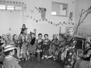 肅南縣幼兒園教師為孩子教授裕固族語(yǔ)言