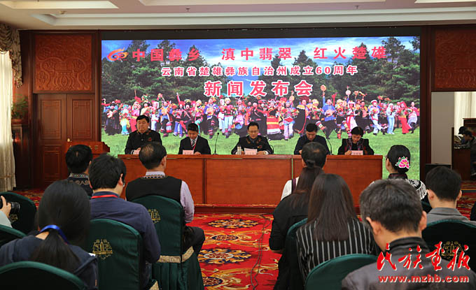 4月2日上午9時,云南省楚雄彝族自治州成立60周年新聞發(fā)布會在民族文化宮舉行