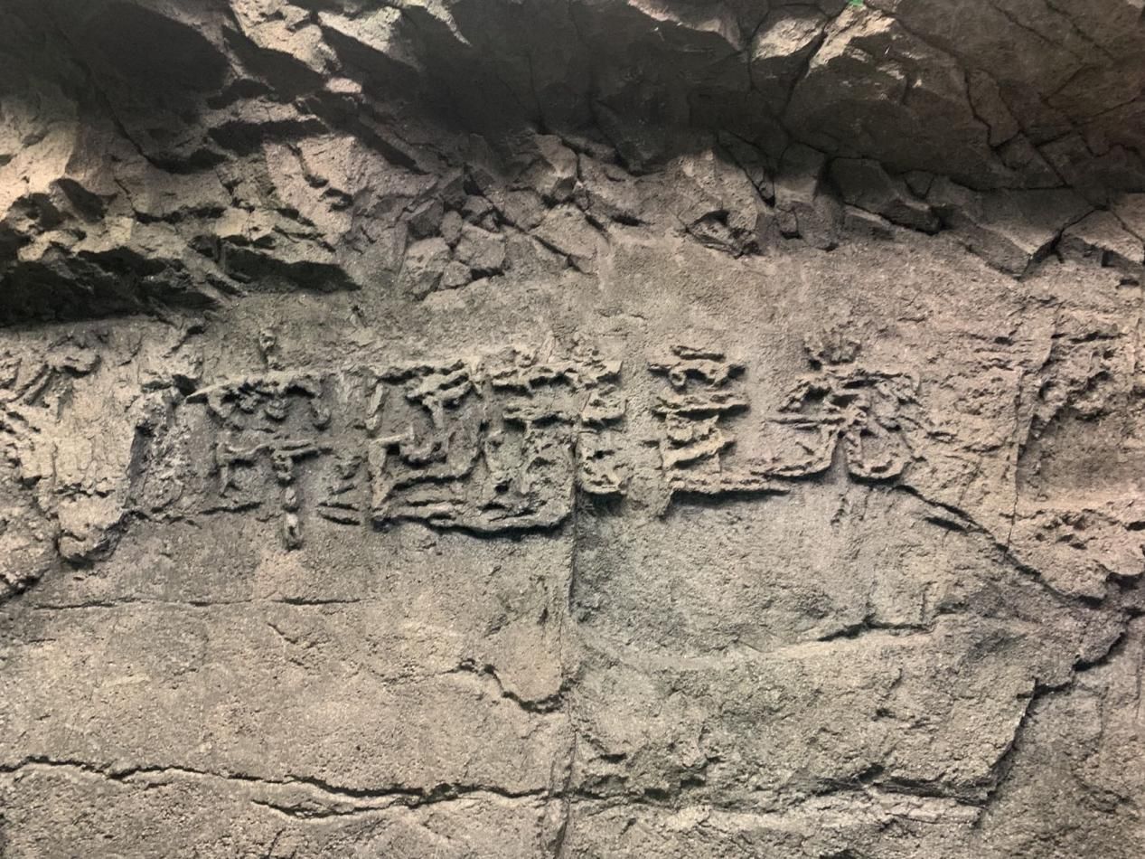 藏字石(場景復(fù)原):位于貴州平塘國家地質(zhì)公園,山頂墜落的一塊巨石斷面上,凸顯出一排很像“中國共產(chǎn)黨”這五個漢字的圖案,這是古生物化石經(jīng)過溶蝕及差異風(fēng)化作用而形成