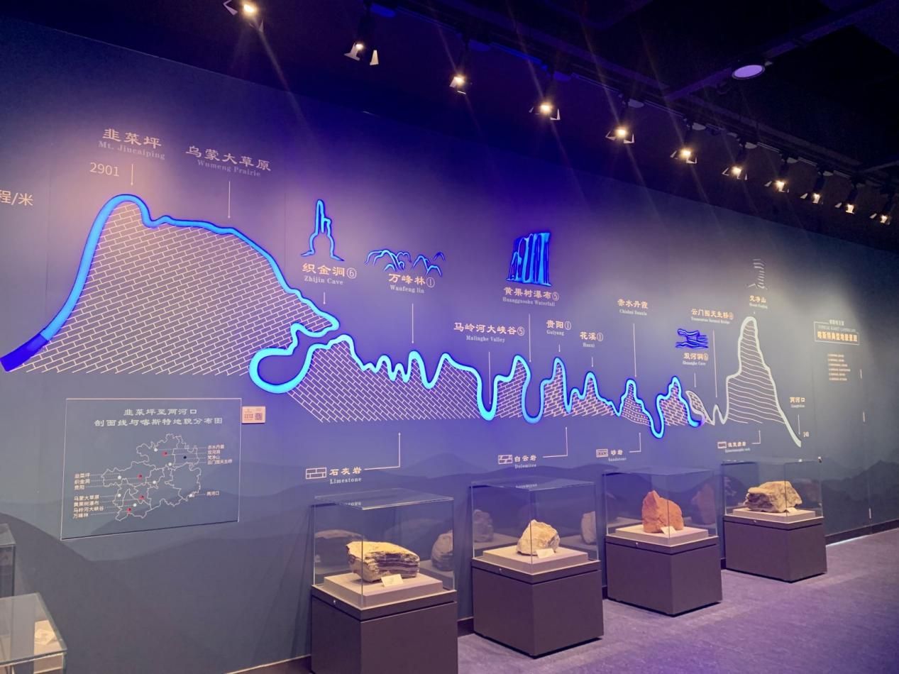 “多彩貴州”展廳以“喀斯特王國”為主題,分為“滄海變遷”“追根溯源”“經(jīng)典地貌”“地質(zhì)旅游”四個部分,運(yùn)用聲光電、場景復(fù)原、油畫、沙盤等展示手段,再現(xiàn)貴州“喀斯特王國”的各類地質(zhì)景觀,大自然的鬼斧神工。