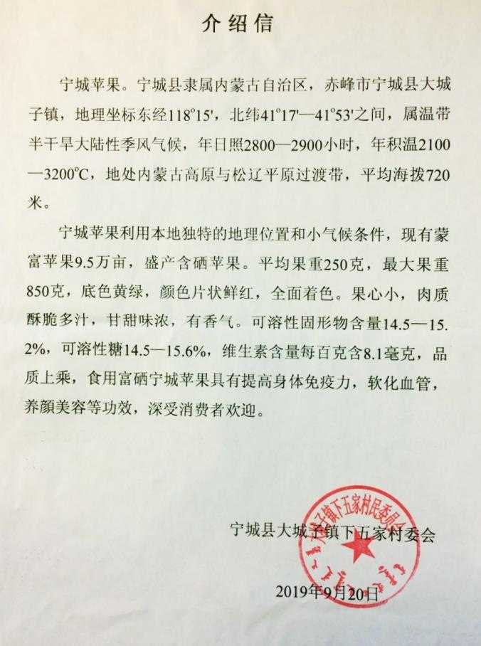 寧城蘋果是寧城縣巴林果樹試驗(yàn)場(chǎng)與沈陽農(nóng)業(yè)大學(xué)合作,于1978年以哈爾濱東光蘋果為母本和日本富士蘋果為父本雜交而來,經(jīng)過十幾年時(shí)間選育而成的蘋果。1997年內(nèi)蒙古自治區(qū)科學(xué)委員會(huì)組織國(guó)內(nèi)著名果樹專家進(jìn)行鑒定,定名為蒙富,寓意內(nèi)蒙古的富士。2015年7月“寧城蘋果”通過國(guó)家工商總局商標(biāo)局注冊(cè),取得“寧城蘋果”地理標(biāo)志證明商標(biāo),推動(dòng)了本地蘋果產(chǎn)業(yè)健康快速發(fā)展。