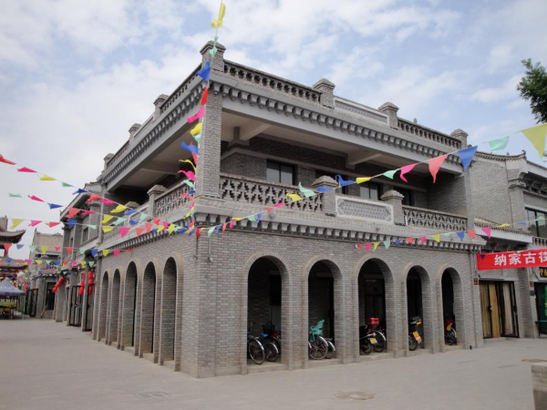 中華回鄉(xiāng)第一街位于永寧縣納家戶北側(cè)。該項目以納家戶清真大寺為中心擴展門前廣場,以廣場為中心向北,直北長380米,東西寬107米,占地面積93.78畝,建筑面積1.6萬平方米,建成商鋪177套。所有建筑遵循當(dāng)?shù)鼗刈宓慕ㄖL(fēng)格,采用青磚砌筑,尤其在細節(jié)處理上用符號、色調(diào)與裝飾來表現(xiàn)回族建筑的精髓。雕梁畫棟,飛檐四出,并且在墻壁、牌坊、檐口、山墻等處運用了大量磚雕、伊斯蘭花飾等將伊斯蘭文化藝術(shù)與中國傳統(tǒng)建筑風(fēng)格有機的結(jié)合在一起,為景區(qū)增加了濃郁的歷史文化氛圍。該街道由北向南依次分為土特產(chǎn)區(qū)、民俗文化區(qū)、旅游紀(jì)念區(qū)、餐飲區(qū)、配套商業(yè)區(qū)五大功能區(qū)。