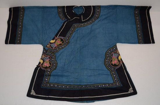 分布在臺(tái)江、施秉、鎮(zhèn)遠(yuǎn)三縣交界地一帶苗族村寨,以臺(tái)江施洞苗族為代表。該服裝上衣為家織布右衽衣,刺繡主要在前襟、衣領(lǐng)、肩袖部分,以黔東南苗族特有的破線繡為主,所繡圖案主要為龍紋,工藝精美,具有民族特點(diǎn)。