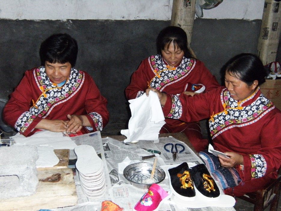 恩施土家族苗族自治州咸豐縣高樂山鎮(zhèn)官壩村土家人做繡花鞋 老鐵供圖