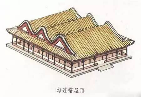 勾連搭屋頂就是兩個(gè)或兩個(gè)以上屋頂,相連成為一個(gè)屋頂,但看起來還是兩個(gè)或兩個(gè)以上屋頂,只是每個(gè)屋頂之間是連在一起的。這樣的屋頂形式,可以在建筑下部形象不變的情況下,使上部屋頂更富有變化,更為生動(dòng)多姿。另外,也在不提高屋面整體高度的情況下,擴(kuò)大室內(nèi)空間。