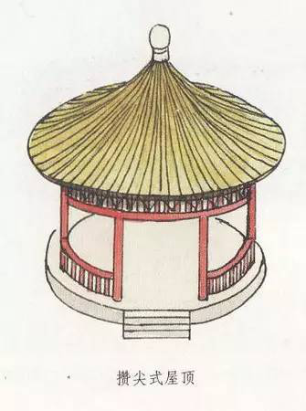 攢尖式屋頂沒有正脊,而只有垂脊,垂脊的多少根據(jù)實(shí)際建筑需要而定,一般雙數(shù)的居多,而單數(shù)的較少。如,有三條脊的、有四條脊的、有六條脊的、有八條脊的,分別稱為三角攢尖頂、四角攢尖頂、六角攢尖頂、八角攢尖頂?shù)?。此外,還有一種圓形攢尖頂式,也就是沒有垂脊。