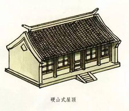 硬山式屋頂有一條正脊和四條垂脊。這種屋頂造型的最大特點(diǎn)是比較簡(jiǎn)單、樸素,只有前后兩面坡,而且屋頂在山墻墻頭處與山墻齊平,沒有伸出部分,山面裸露沒有變化。明、清時(shí)期及其后,硬山式屋頂廣泛地應(yīng)用于我國(guó)南北方的住宅建筑中。正因?yàn)樗燃?jí)比較低,所以屋面都是使用青瓦,并且是板瓦,不能使用筒瓦,更不能使用琉璃瓦。