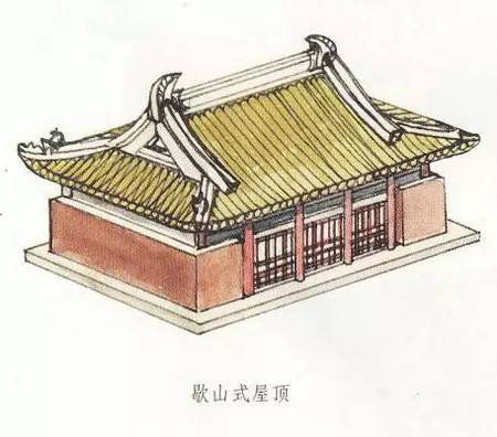 歇山是清式叫法,在清代之前它又有曹殿、漢殿、廈兩頭造等不同名稱。歇山式屋頂在具體形式上又有最基本形式的單檐歇山頂,以及變化形式的二層、三層或多層屋頂?shù)闹亻苄巾敚€有最上面的屋頂可以不設(shè)正脊而形成卷棚式的卷棚式歇山頂?shù)榷喾N形式。
