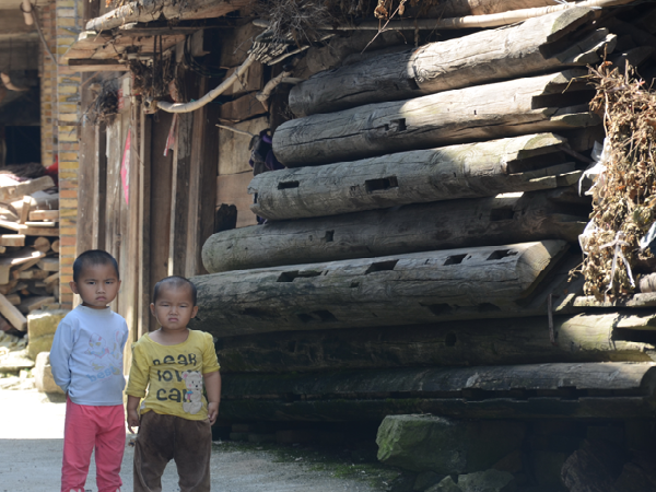 生活在獨龍江流域的獨龍族人,木壘房是他們的主要民居形式。他們沿江而居,在稍為開闊、人能站立的坡地上修建自己傳統(tǒng)的木屋。房舍依山傍水構筑成大大小小的村寨。木壘房的建造是靠山打樁,一般離地面二、三尺高,這樣可通風防濕。木壘房四周圍以由下而上排列起的椽子為墻,上覆以砍刀削劈的木板,內鋪木板或編制的竹篾笆;竹篾房四周圍以編制的竹篾笆為墻,上覆茅草,內鋪竹篾笆。木壘房多分為兩層:上層住人,下層圈養(yǎng)牲畜,有獨木梯上下?;鹛潦羌彝サ闹匾笳鳎緣痉炕鹛猎O于房屋四角,一般是長輩人火塘在上方,下輩人火塘在下方。一般子女成婚后并不分家,只在房內新設個火塘而已。