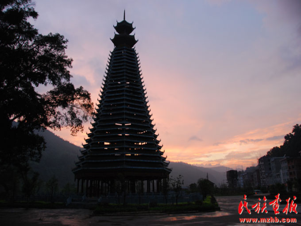 一首侗族詩歌《遠(yuǎn)去的鼓樓》這樣寫道:“如今我面對(duì)一張泛黃的照片/風(fēng)雨之中似乎還聽到了鏗鏘之聲/遠(yuǎn)古的鼓角征戰(zhàn)廝殺/如海市蜃樓般的幻影/在眼前縹緲而來又縹緲而去/鼓樓毀了又建建了又毀/一個(gè)歷盡滄桑的民族呵/木雕畫梁上的記錄/也是那樣千瘡百孔/正因有千瘡百孔作點(diǎn)綴/古老的民族古老的鼓樓/更加放射出不屈的光芒/更加盛開出藝術(shù)的花朵。”