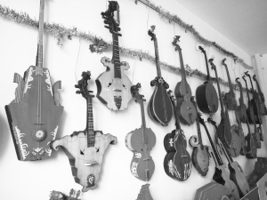 何曉制作的東布爾各具形態(tài),其中融合了其他民族樂(lè)器的特點(diǎn)。