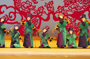 達(dá)斡爾族有語言沒有文字,然而在《神奇的達(dá)斡爾》演出現(xiàn)場(chǎng),觀眾卻能夠感受到演員通過聲音和肢體語言記錄下來的活的文字,并且重新思考非物質(zhì)文化遺產(chǎn)的意義所在。近兩個(gè)小時(shí)的演出,觀眾對(duì)達(dá)斡爾族的非物質(zhì)文化遺產(chǎn)有了直觀的感受:達(dá)斡爾族搖籃,它的制式體現(xiàn)了達(dá)斡爾人對(duì)生命的思考和對(duì)自然的尊重;哈尼卡,達(dá)斡爾族傳統(tǒng)的剪紙藝術(shù),伴隨著金色的童年,充實(shí)著達(dá)斡爾人色彩斑斕的心靈世界;達(dá)斡爾族頸力賽,勞動(dòng)之余一項(xiàng)普及性民間傳統(tǒng)體育競(jìng)技運(yùn)動(dòng),給人們平常的生活帶來無窮的樂趣——它們,都于2007年被列入第一批內(nèi)蒙古自治區(qū)非物質(zhì)文化遺產(chǎn)保護(hù)名錄。不僅如此,曲棍球(達(dá)斡爾語為“波依闊”,達(dá)斡爾族人喜愛的民間傳統(tǒng)體育項(xiàng)目)、魯日格勒(達(dá)斡爾族民間舞蹈,多表現(xiàn)狩獵生活和勞動(dòng)場(chǎng)面)、烏春(達(dá)斡爾族特有的說唱藝術(shù))還被列入第一批國(guó)家級(jí)非物質(zhì)文化遺產(chǎn)保護(hù)名錄。