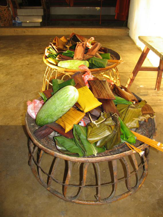 所有佐餐菜肴及小吃均以酸味為主,如酸筍、酸豌豆粉、酸肉及野生的酸果;喜歡吃干酸菜,其制法是把青菜曬干,再用水煮,加入木瓜汁,使味變酸,然后曬干儲(chǔ)藏。吃時(shí)放少許煮菜或放在湯內(nèi)。這種酸菜,有些地方的傣族幾乎每天都吃。據(jù)說傣族之所以常食酸味菜肴,是因常吃不易消化的糯米食品,而酸味食品有助于消化。苦瓜是產(chǎn)量最高、食用最多的日常蔬菜。除苦瓜外,西雙版納還有一種苦筍,因此傣族風(fēng)味中還有一種苦的風(fēng)味,較有代表性的苦味菜肴是用牛膽汁等配料烹制的牛撒皮涼菜拼盤。