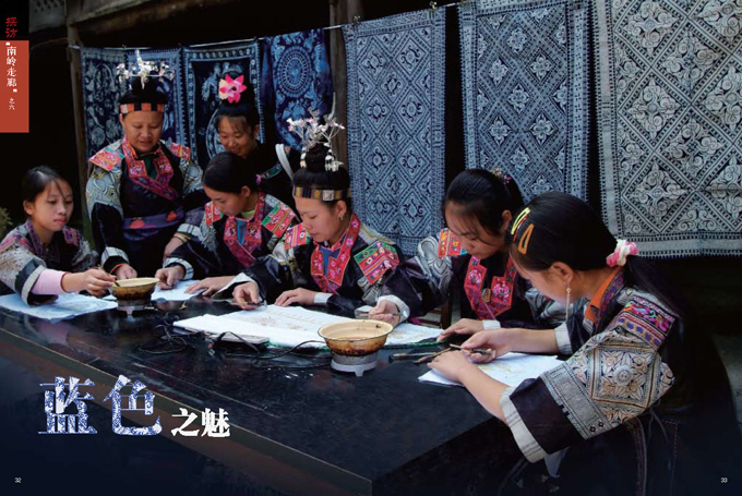 蠟染是貴州省丹寨縣、安順縣、織金縣苗族世代傳承的傳統(tǒng)技藝。 丹寨縣、安順縣及織金縣是以苗族為主體的多民族聚居區(qū),在長期與外界隔絕的艱苦環(huán)境中,這里的居民逐漸形成了自給自足的生活方式,古老的蠟染技藝因此得以保留下來。按苗族習(xí)俗,所有的女性都有義務(wù)傳承蠟染技藝,每位母親都必須教會自己的女兒制作蠟染。所以苗族女性自幼便學(xué)習(xí)這一技藝,她們自己栽靛植棉、紡紗織布、畫蠟挑秀、浸染剪裁,代代傳承。在此狀況下,這些苗族聚居區(qū)形成了以蠟染藝術(shù)為主導(dǎo)的衣飾裝束(以上三照片由劉軍提供)。