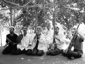 維吾爾族藝人(右二)演奏沙它爾