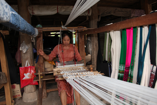 云南傣錦歷史悠久,風格古樸,以其織工精巧、圖案別致、色調(diào)鮮艷、堅牢耐用和富有民族特色而著稱。它主要流傳和盛行于云南省南部的西雙版納傣族自治州,西南部的德宏傣族景頗族自治州、耿馬傣族佤族自治縣、景谷傣族彝族自治縣,以及孟連傣族拉祜族佤族自治縣等傣族較聚居的區(qū)域。云南傣錦是一種以絲線、毛線、棉線、麻線、晴綸線、金絲線等材料為原料,采用傣族傳統(tǒng)的木架織機手工操作,經(jīng)提花、織造等工藝形式制作成的長條形織錦物,是云南的傣族人民從事宗教活動和美化生活必不可少的物品。傣錦長短不一,幅寬一般為20-60厘米不等。因其花紋絢麗多彩、形象生動、變化多端 、呈立體形,在云南少數(shù)民族織錦中獨樹一幟,享有很高的聲譽。傳統(tǒng)的云南傣錦按構成形式和材料主要有兩種即西雙版納傣錦和德宏傣錦。西雙版納傣錦以白色為底,用紅色和黑色緯線織成花紋,傣錦線條寬窄有致,形體夸張簡練,圖案較為規(guī)律化,具有粗獷的質(zhì)樸感和濃厚的裝飾性;而德宏傣錦則色調(diào)較為濃重,常用黑、紅、翠綠、黃、藍等濃艷色彩的絲線和棉線摻用金絲錦線織制,圖案以菱形、方形、六角形及回形紋等幾何形為主,織錦鮮艷奪目,結構嚴謹,紋飾古雅,尤顯華麗。