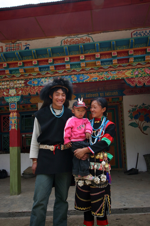 隨著氏族制的解體,女子的社會地位逐漸下降,男子看重女子的貞操,因此公房因不合時宜而慢慢消失,由長房取代。“長房”崩尼語為“南塔”,與邦戈的區(qū)別在于其內(nèi)部有隔墻,在每個居室里設有火塘,有的一個家族住在一座長房內(nèi),形成一個大家庭。珞巴族大家庭形成的原因一般是一夫多妻或奴隸較多,妻子最多的有十多個,多妻的主要原因是富有的男子可以隨意買賣女子或者是轉(zhuǎn)房。這種家庭的居住形式主要有各妻子不分居和不分居兩種,在丈夫的主持下共同生產(chǎn)生活。就珞巴族家庭形態(tài)的總體來看,仍以一夫一妻制的小家庭為主,因此存在長屋的同時,每個部落都建有供一夫一妻的個體家庭居住的獨立小房,或為干欄式,或為地居式。