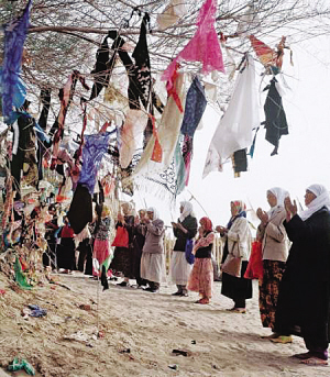 麻扎,系阿拉伯語的語音,原意為參觀(探望)之地,伊斯蘭教產(chǎn)生后專指“圣徒之地”。所謂麻扎朝拜,主要是穆斯林為得到圣徒佑助而進(jìn)行的祈禱活動(dòng)。