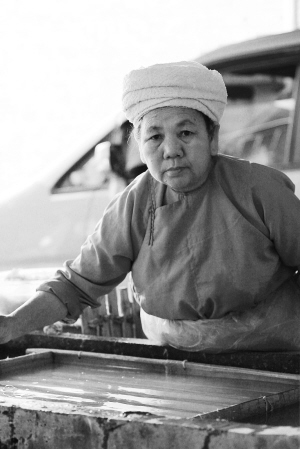 云南耿馬傣族自治縣孟定鎮(zhèn)芒團(tuán)村制作構(gòu)紙的傣族老大媽
