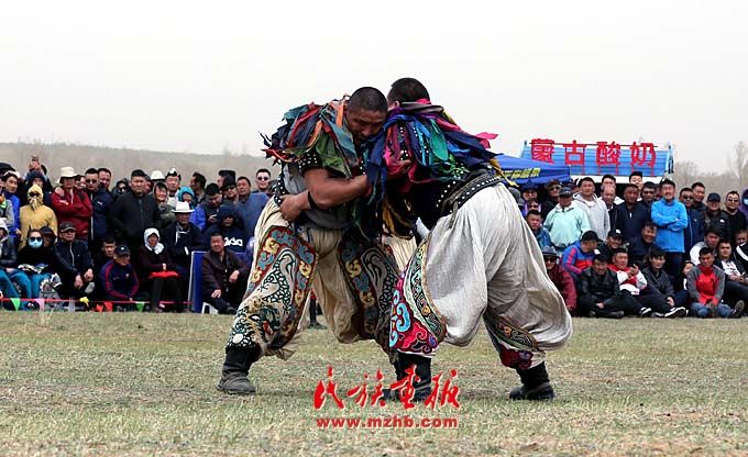 來自內(nèi)蒙古自治區(qū)各盟市的優(yōu)秀搏克手為廣大觀眾奉獻(xiàn)了多場精彩激烈的搏克較量。經(jīng)過激烈競爭烏珠穆沁的搏克手查干扎那奪冠。