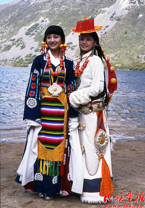 縱觀中國(guó)少數(shù)民族的服飾色彩,沒(méi)有一個(gè)民族的服飾色彩是單一的,有的民族可能比較含蓄,他們只是在裙擺綴上一條細(xì)細(xì)的花邊,在衣領(lǐng)上繡一排小小的花朵, 或是把彩虹纏上衣袖;有的民族可能比較奔放,他們把鮮艷的花朵大大地繡在胸前背后,或是用紅、黃、黑等大色塊來(lái)組成長(zhǎng)裙……“赤橙黃綠青藍(lán)紫,誰(shuí)持彩練當(dāng)空舞”,在中華大地上舞動(dòng)赤橙黃綠青藍(lán)紫的是55個(gè)少數(shù)民族的兄弟姐妹。
